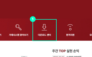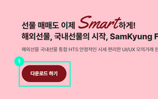 거래시스템 → HTS다운로드 → ‘다운로드 하기’ 버튼 클릭